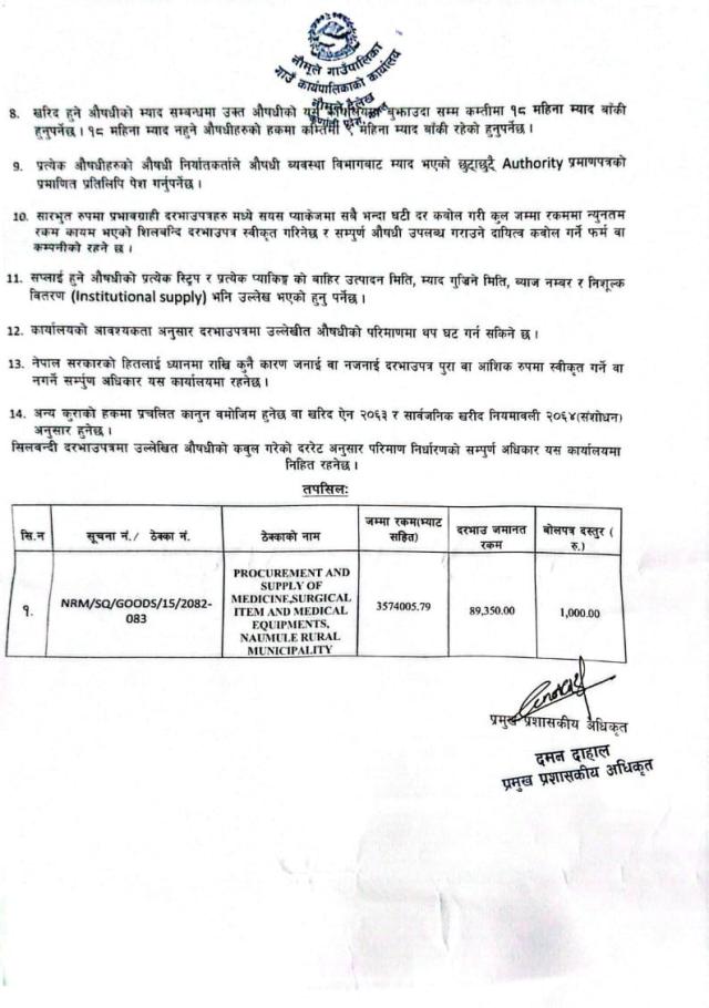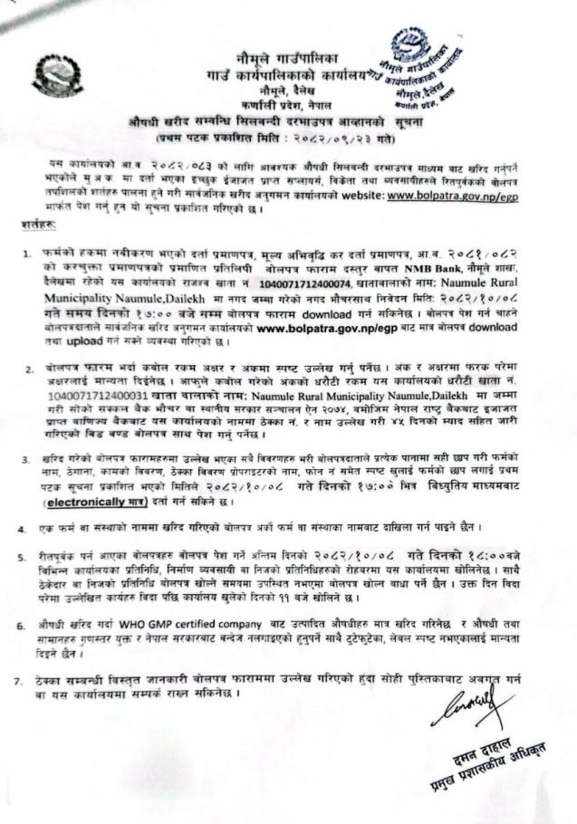 औषधी खरिद सम्बन्धी सिलबन्दी दरभाउपत्र आव्हानको सूचना !!