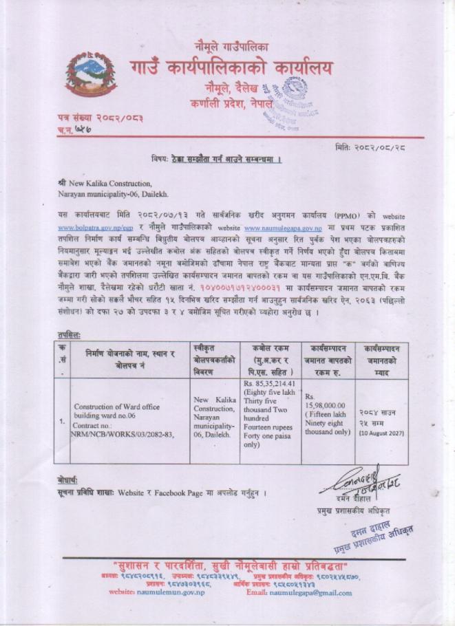 ठेक्का सम्झौता गर्न आउने सम्बन्धी सूचना !!
