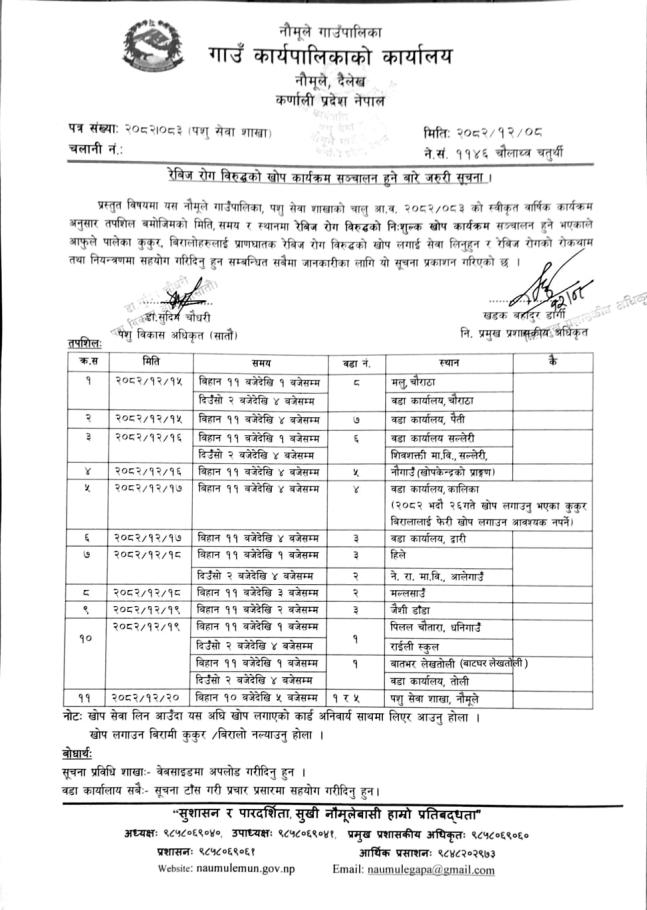 रेविज रोग विरुद्धको खोप कार्यक्रम संचालन हुने बारे जरुरी सूचना !!