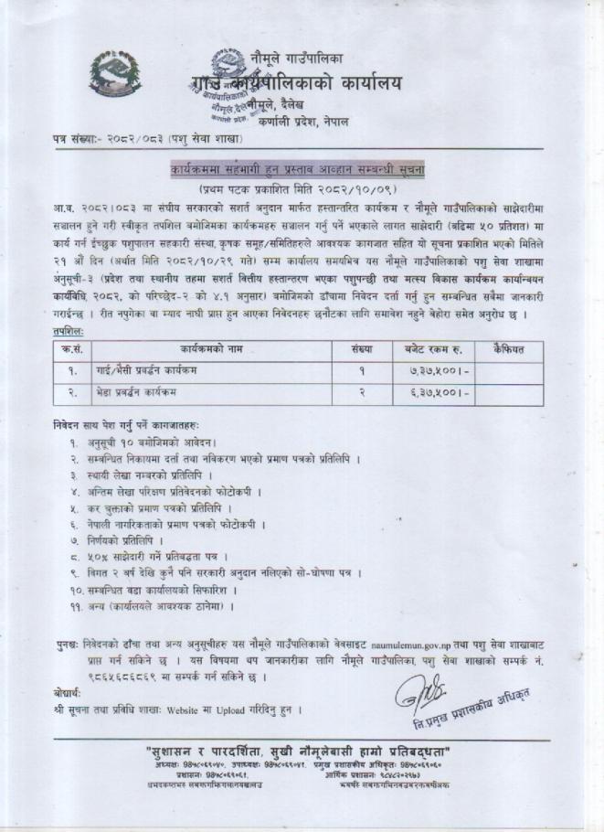 कार्यक्रममा सहभागी हुन प्रस्ताव आव्हान सम्बन्धी सूचना !!