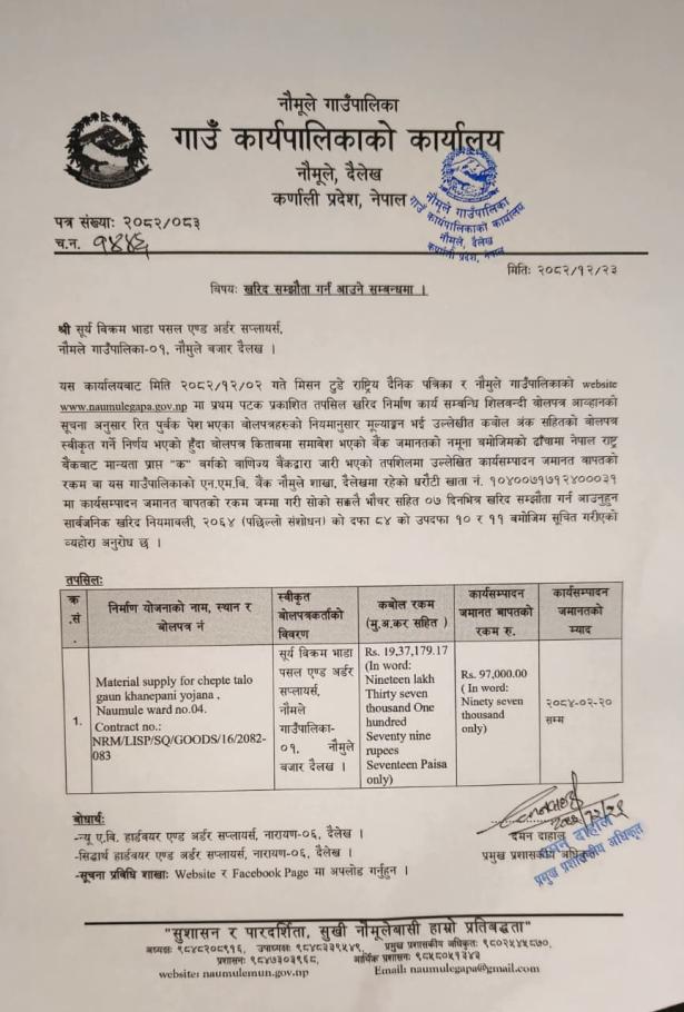खरिद सम्झौता गर्न आउने सम्बन्धी सूचना !!