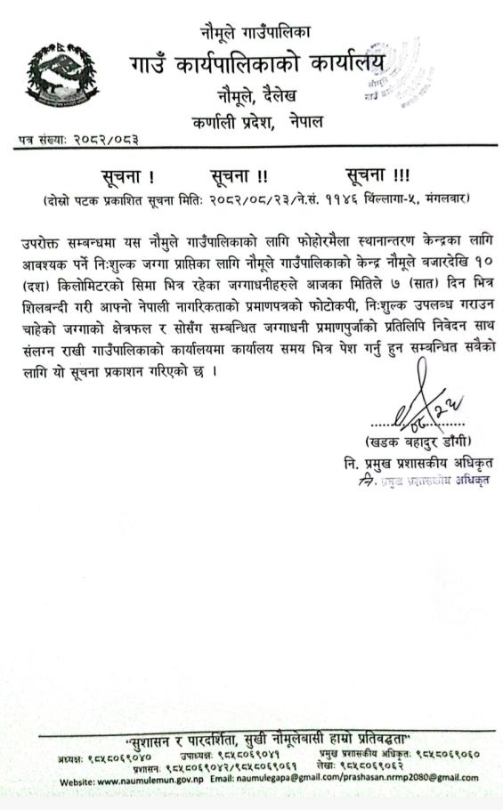नि-शुल्क जग्गा प्राप्ति सम्बन्धी सार्वजनिक सूचना !!