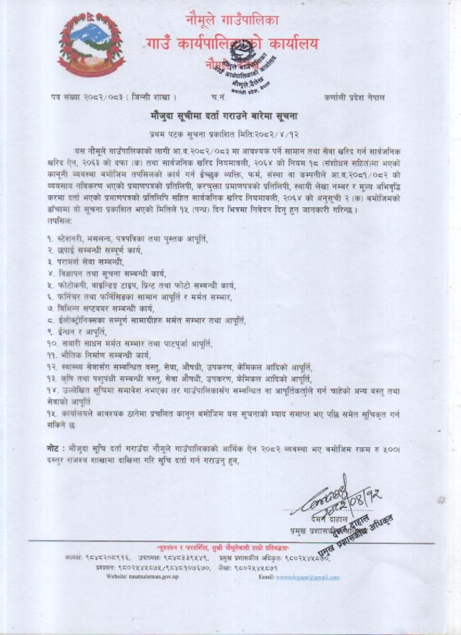 मौजुदा सूचीमा दर्ता गराउने बारेमा सूचना !!