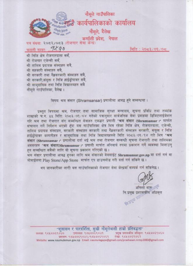 श्रमसंसार प्रणालीमा आवद्ध हुने सम्बन्धी सूचना !!